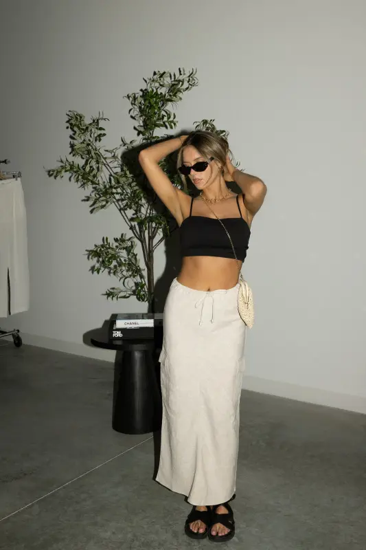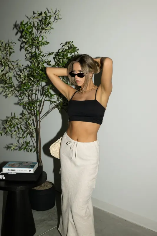 Our Brea Gathered Crop Tank, a must-have essential for every fashion-forward wardrobe. With its chic square neckline, delicate spaghetti straps, and irresistibly cropped silhouette, this tank exudes contemporary charm. Crafted from a luxuriously stretchy and smooth material that effortlessly conforms to your body, it ensures a flattering fit with every wear. The gathered detailing throughout the bodice adds a touch of sophistication and allure. Offering ample stretch and running true to size, this versatile top promises both style and comfort for any occasion. Elevate your look with the Brea Gathered Crop Tank, the epitome of effortless elegance and modern flair.