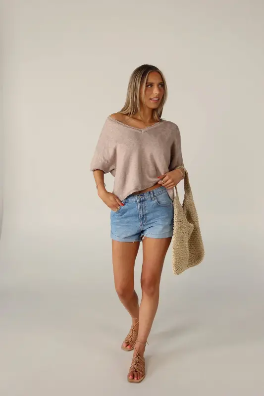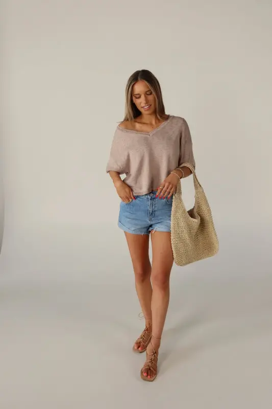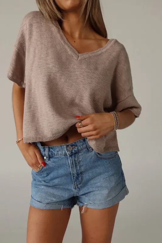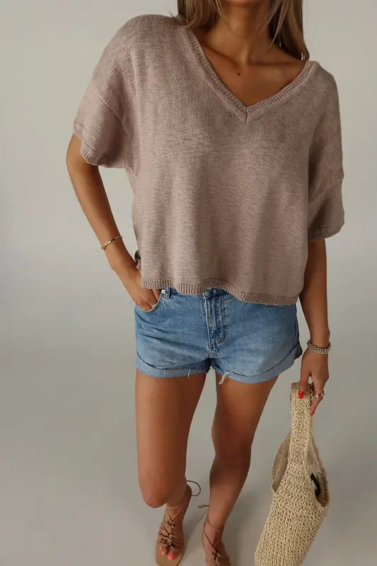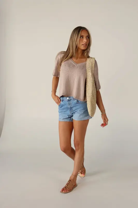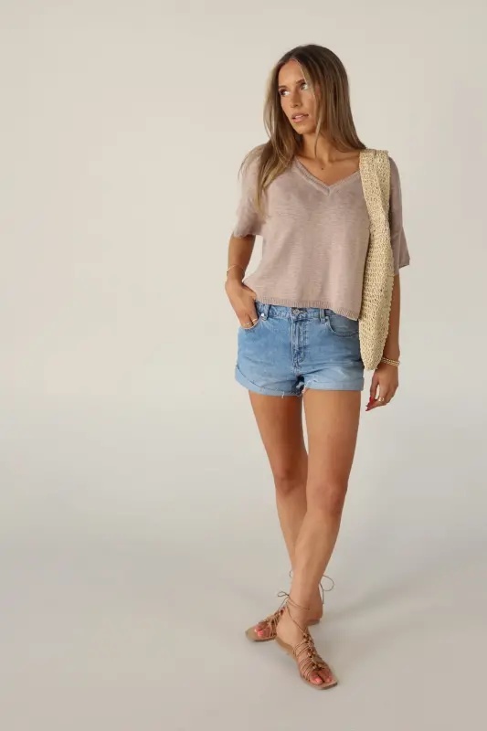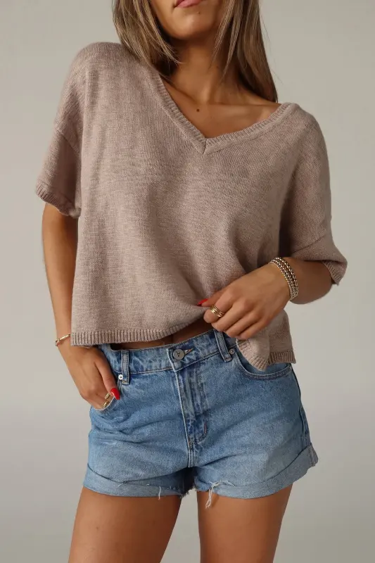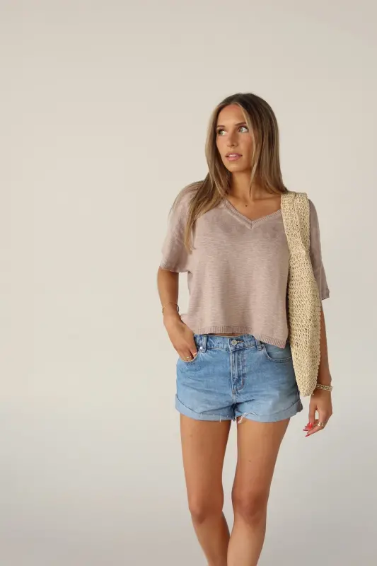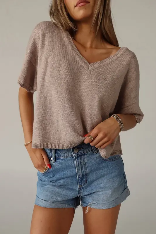 Elevate your everyday style with our Suttyn Short Sleeve top. This versatile piece combines comfort and sophistication, making it a perfect addition to your wardrobe. This top features a relaxed fit, V-neckline, and raw hemline. The knit texture and V-Neckline adds a touch of elegance and a flattering silhouette.